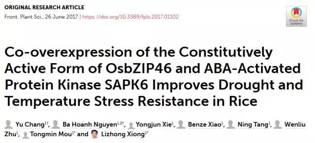 轉(zhuǎn)化基因:OsbZIP46CA1(bZIP轉(zhuǎn)錄因子OsbZIP46刪除負調(diào)控domainD)+ SAPK6(蛋白磷酸酶家族);