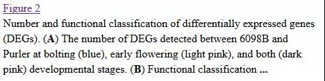 取樣方法:兩個(gè)品系的均取抽薹時(shí)期與花發(fā)育早期兩個(gè)時(shí)間點(diǎn)的分枝發(fā)生部位。每個(gè)品系每個(gè)時(shí)期1個(gè)樣本(每個(gè)個(gè)體至少取5個(gè)分枝發(fā)生部位,最多6個(gè)個(gè)體混樣樣本),總共4個(gè)樣本,每個(gè)樣本分別進(jìn)行mRNA測(cè)序與microRNA測(cè)序