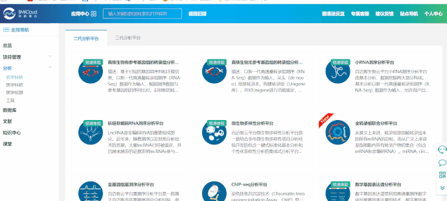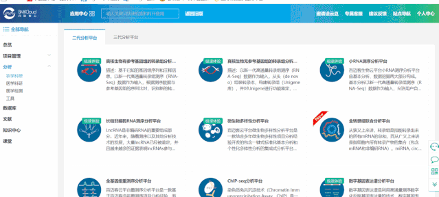 百邁客云包含農(nóng)學(xué)和醫(yī)學(xué)兩大類分析平臺(tái),醫(yī)學(xué)分析平臺(tái)主要針對(duì)人、鼠數(shù)據(jù)的分析,包含:轉(zhuǎn)錄組、非編碼RNA、單基因病外顯子、腫瘤外顯子、重測(cè)序等數(shù)據(jù)分析,以及全轉(zhuǎn)錄組聯(lián)合分析;農(nóng)學(xué)分析平臺(tái)可以應(yīng)用到更多的物種,涵蓋轉(zhuǎn)錄組、非編碼RNA、微生物、蛋白、代謝等數(shù)據(jù)的分析,以及全轉(zhuǎn)錄組聯(lián)合分析等。點(diǎn)擊左側(cè)導(dǎo)航分析->農(nóng)學(xué)或者醫(yī)學(xué)打開分析平臺(tái)列表頁面,點(diǎn)擊選擇您想要使用的分析平臺(tái),打開其詳細(xì)介紹頁面,該頁面可以看到該平臺(tái)的應(yīng)用領(lǐng)域“平臺(tái)介紹“技術(shù)背景“案例“課堂“版本記錄,點(diǎn)擊打開軟件即可進(jìn)入到參數(shù)頁面。