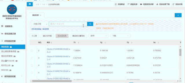 百邁客云平臺(tái)可以在所有基因挖掘這里進(jìn)行所有基因篩選和PCA聚類(動(dòng)圖是示例數(shù)據(jù))