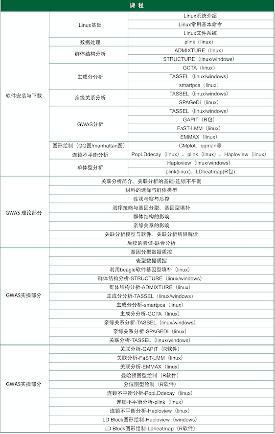 3、群體類課程:GWAS+遺傳進(jìn)化課程+重測(cè)序分析課程(可組合:零基礎(chǔ)R語言繪圖+生信入門+比較基因組+基因家族分析課程)