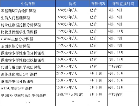 會(huì)員卡2:任選6個(gè)生信課程,7000元/年/人