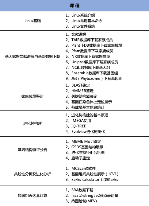 2、基因組類課程:比較基因組學(xué)+基因家族分析課程(可組合:零基礎(chǔ)R語言繪圖+生信入門+GWAS+遺傳進(jìn)化+重測(cè)序分析課程)